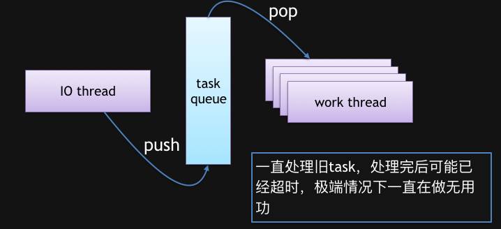 很多系统都有一个任务队列,有一个IO线程负责往任务队列里push任务,工作线程从队列里pull任务,默认情况下,这个队列是FIFO的,但是设想这种情况,当工作线程处理不及时时,队列里的任务会越积越多,导致每一个任务都需要在队列里等待很长时间才会被得到处理,但是由于任务在队列里等待了过长的时间,当任务处理完后,可能client已经认为本次请求超时了,server做了无用功,极端情况下可能会导致server一直在做无用功。