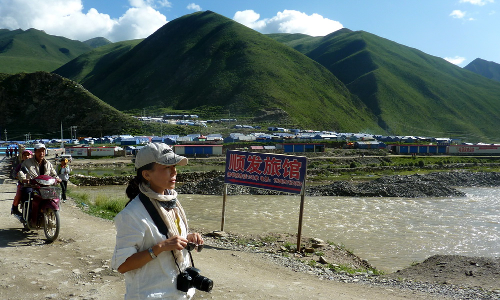 一进玉树境内,劈面一块巨大的“感恩牌”。