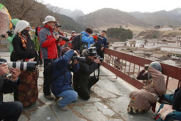 这篇帖子,在诸如猫眼看人、豆瓣等网站上见过。与这样的堪称恐怖摄影的场面相似,我在拉萨也多次见过,并且也如这位帖子的作者,将镜头对准过那些暴力摄影者,以示立此存照。我曾写过《在西藏发生的摄影暴力》一文,将在下一篇博文中贴出。