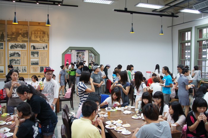 接著切蛋糕,這時候門外已經一堆等著進來吃東西的同學了。