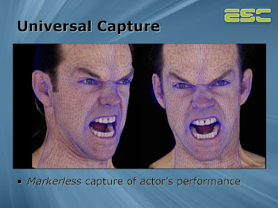 第一個把optical flow技術用在臉部表情動畫的不是"駭客任務"續集 ,其實是用在"不可能的任務2"與"靈異總動員". 裡面有一個角色要變臉的鏡頭, 我們決定要用optical flow的技術來做, 於是我們就拍攝一位演員的臉部表情背景是綠色螢幕, 而另外又做了這演員的模型. 我們把演員表情所產生的optical flow套用到模型上面, 模型就開始講話了. 雖然效果很粗糙, 但是這個測試說服了我們,這樣的流程可行. 雖然電影後來沒有用這個畫面, 可是這就是駭客任務續集UCAP的基礎, 我們可以說, 只要有好的3D模型, 我們就能重新建立某位角色的臉部表情.