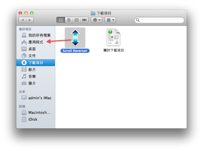 下載後,把 Scroll Reverser 程式拖入「應用程式」內。