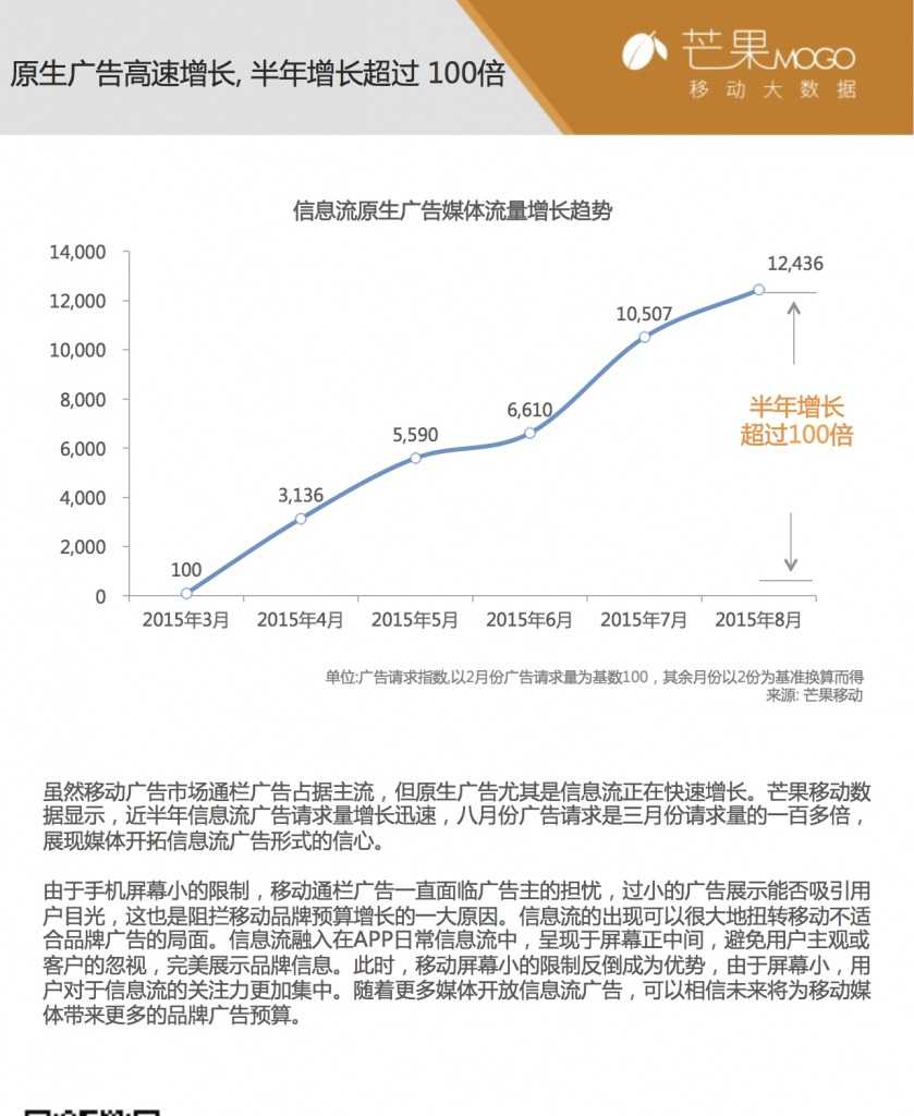 芒果移动大数据显示信息流原生广告半年增长超百倍