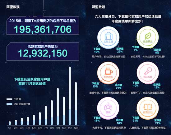 阿里数娱TV应用商店2015年度整体数据图