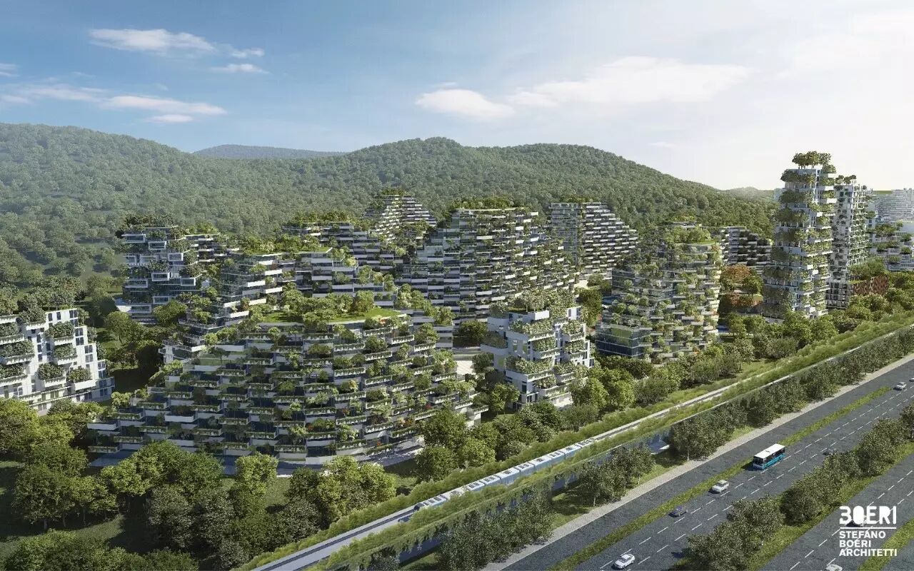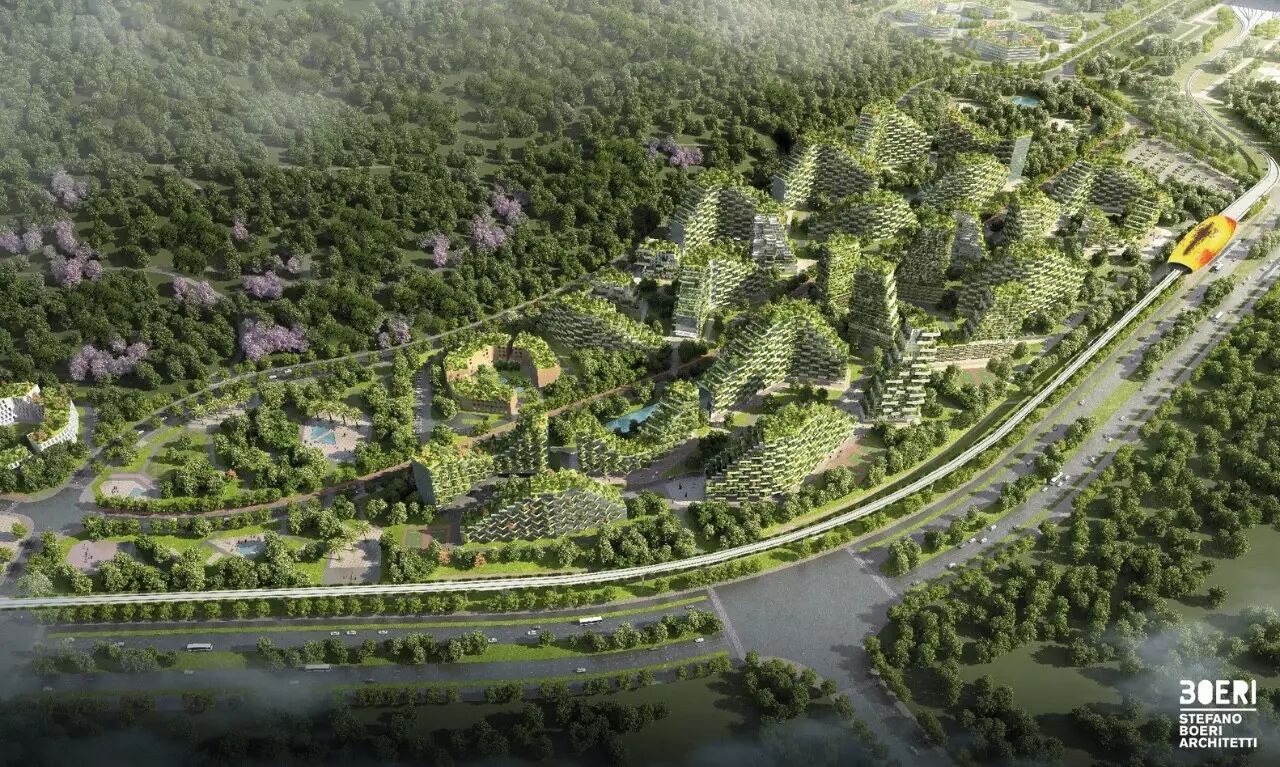 这座绿化城市的理念来自于 Stefano Boeri Architetti 建筑事务所对垂直绿化的深入研究,他们在意大利的米兰完成了世界上第一个立体绿化大楼,现在在全球范围内同时进行着其他几个绿化系统设计方案,其中包括中国的南京,上海和深圳。