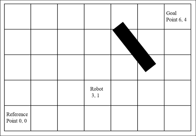 第二个关键位置是机器人的起点。寻迹小车会根据X坐标和Y坐标保持自身 相对于X轴、Y轴上直到目标位置为止的一些固定参考点位置的轨迹。它会使用 指南针来跟踪这些方向。
