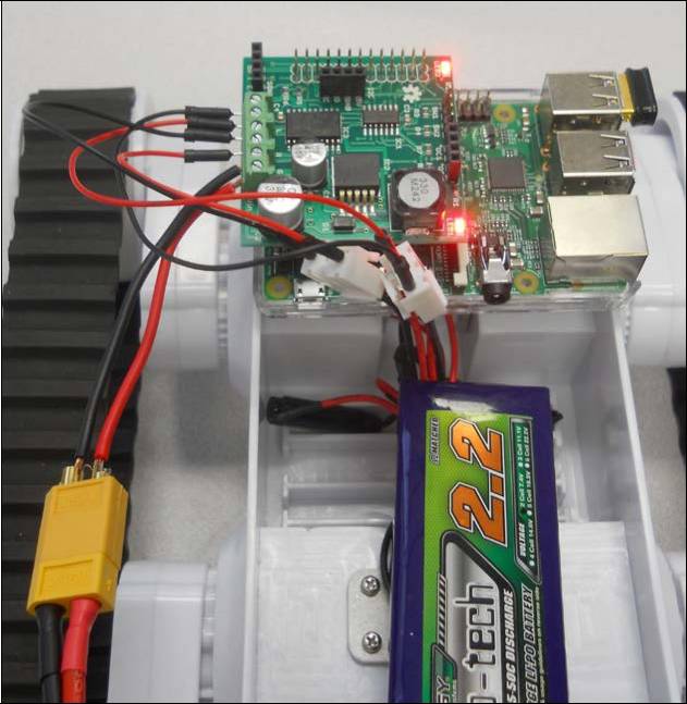 将电源上的电源线连接到驱动板上的电源输入端,电压为6-7v。也可以使用4节AA电池或者 2SLiPo 锂电池,将地线和电源线连接到点击驱动板上。