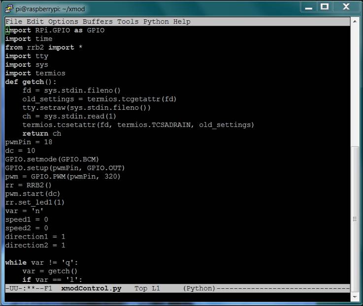 通过上述的代码我们基本上清楚了如何通过树莓派控制电机、也知道了我们如何控制树莓派,通过超声波传感器的数据反馈给树莓派控制程序,然后树莓派做出决策,并将这个决策再次反馈给驱动电机,电机做出正转或者反转的相应,此时小车是前进或者后退。
