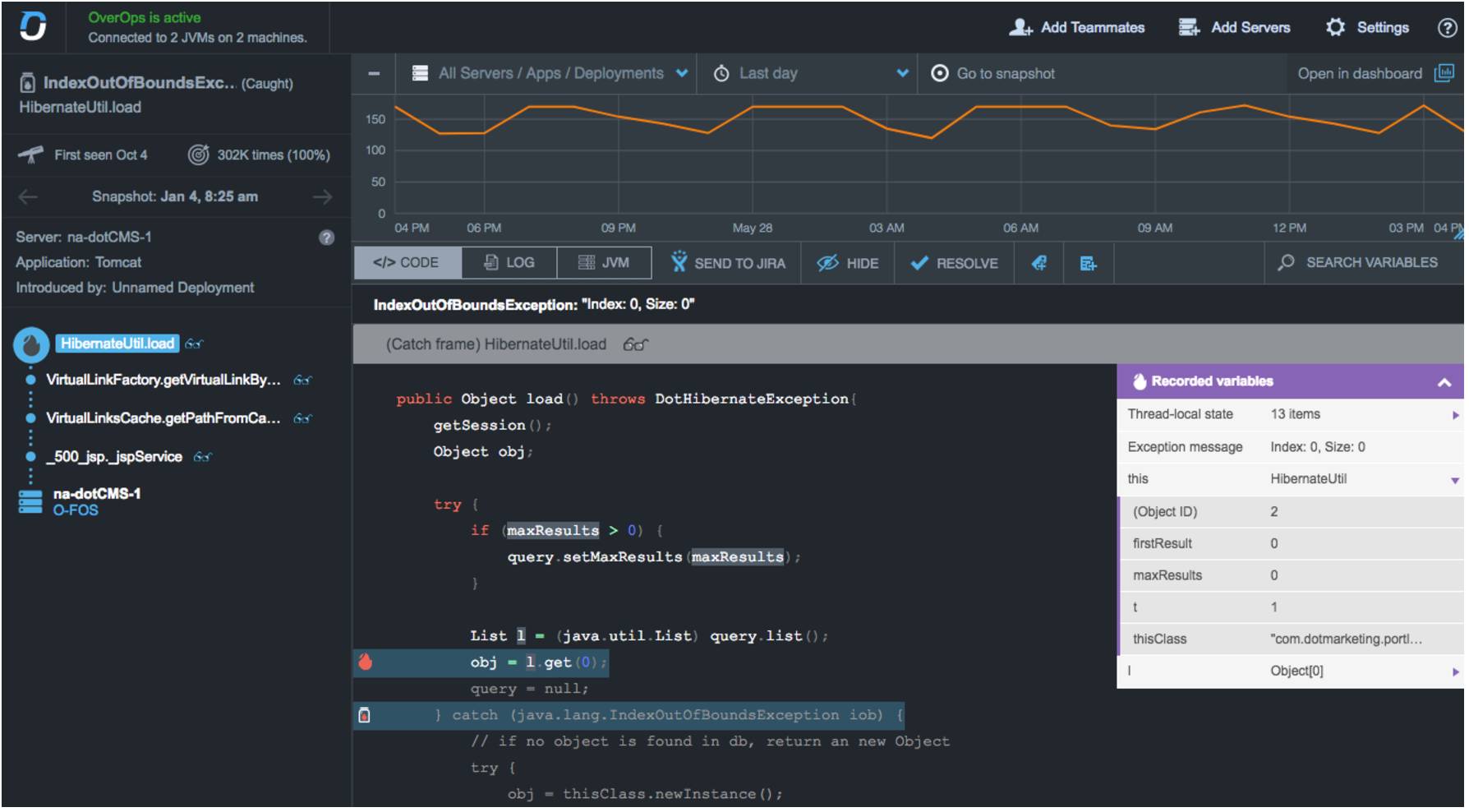 其中有一款叫做OverOps的工具脱颖而出,这是一款完全专注于基于JVM(Java虚拟机)应用程序的工具,是一款高度优化的本地代理,使用过程中最多增加1%的CPU开销,几乎不存在网络或存储开销。这对于内存空间和性能要求较高的基于容器的JVM来说是一个理想的选择。