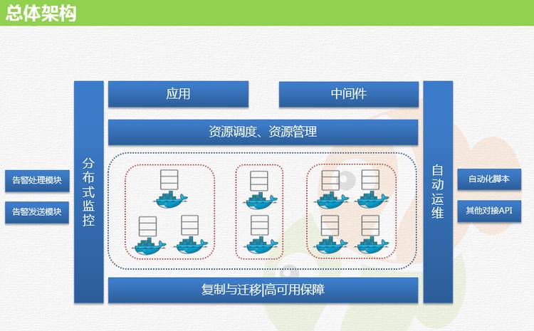 容器调度的开源产品主要有 Kubernetes 和 mesos,但是我们并没有选用这两个。主要原因是我们内部已经开发了一套基于 Docker 的资源管理、调度的系统,至今稳定运行 2 年多了。这套架构稍作修改是符合需求的。