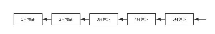 区块链,拆开来就是“区块+链”,实际上是一种数据的记录格式,软件在处理数据的时候,总是需要按照某种格式来读写,比如我们通常使用的关系型数据库,数据是按照一条一条的记录保存,或者再通俗的说,就像会计记账,将每一笔发生的业务都记在账本中,每一笔记录的账务称之为是凭证,一个月下来,将记录的一堆凭证数据汇总成 一个账簿,每过一个月就月结一下。区块链的格式,跟会计的这种记账方法很类似,所谓区块也就是一大坨数据的意思,我们可以将会计每个月所有记录的记账凭证看成是一个个的区块,区块之间通过年 月串联起来,这样看起来就像是一条数据链一样,区块链其实就是这么简单的一个格式,我们看个示意图: