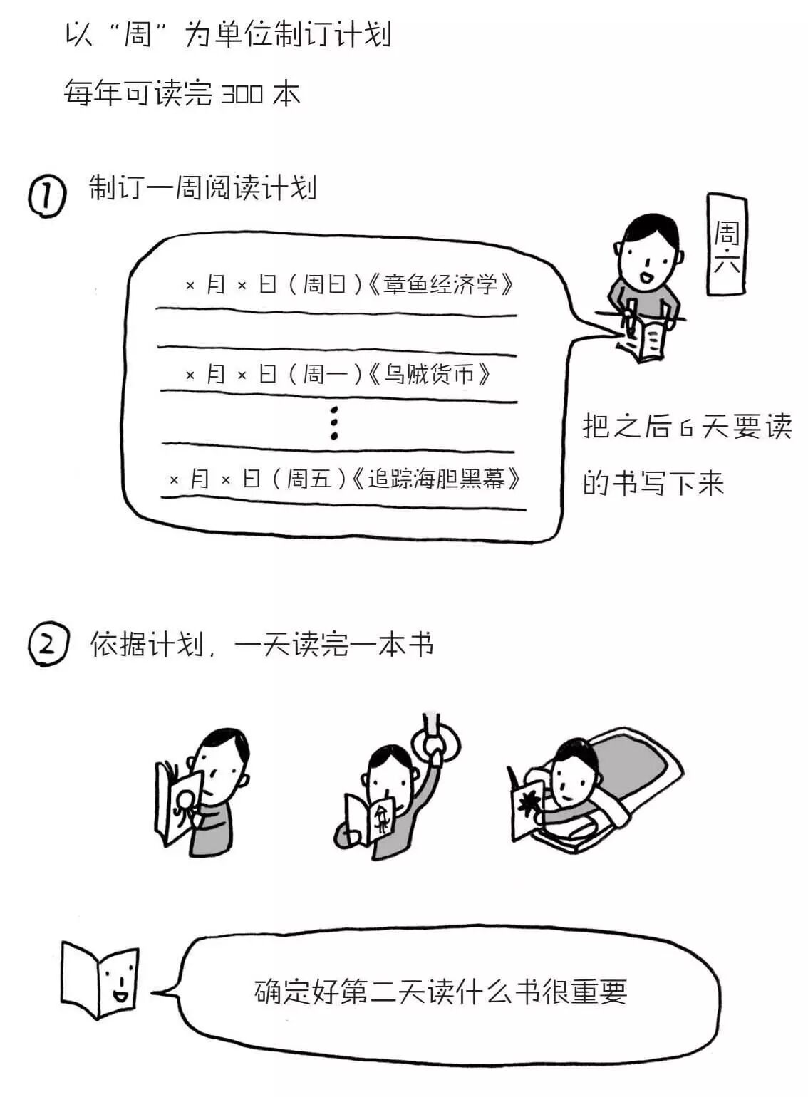 比如说,规定自己每周读6本书,周日的时候把这一周想看的书都下载好或者买好。