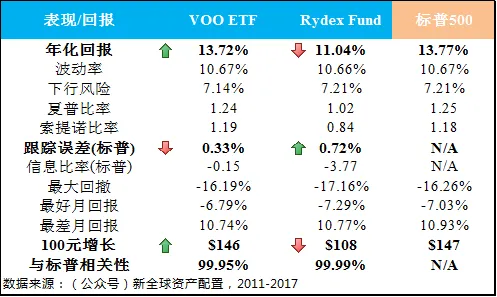 后来找到我们帮他做组合分析的时候发现:这个基金过往7年间的表现,与标普500的相关性高达99.99%,而且平均还每年跑输标普2.7%。后来才发现,这个公募基金每年的管理费高达2.31%,我还是为是数据出错了!要知道同样追踪标普500指数的美国先锋基金的ETF:VOO,它的年化管理费才0.05%。