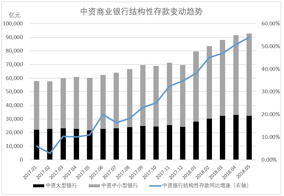 据媒体报道,银保监会在制定理财新规的同时,还专门制定了针对理财子公司、结构性存款的两大配套政策。保本理财在统计中一直纳入结构性存款统计,保本理财其实和结构性存款之间是交集关系。《意见》明确资产管理业务是资产管理机构的表外业务,因此纳入表内管理的保本理财将被剔除在资产管理业务之外。2017年以来,中资商业银行结构性存款急速增加,从2016年末5.16万亿增加至2018年5月末9.26万亿。也是保本理财转型过程中无奈之举。