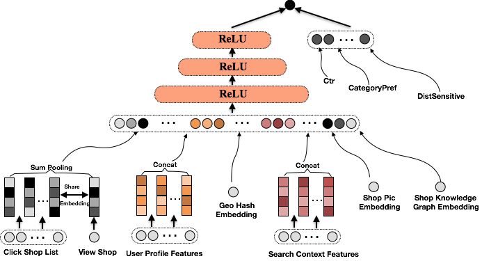 这些信息与单纯的商户星级、点评数相比,刻画的角度更多,粒度也更细。我们将这些标签也进行Embedding并输入到模型中: