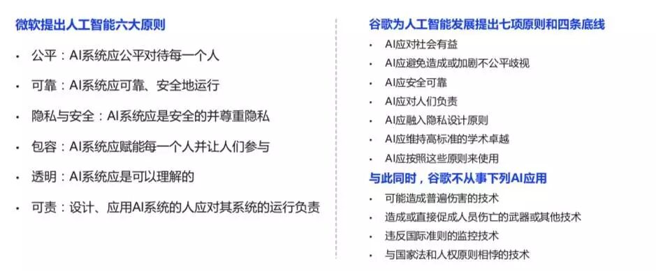 因此,建立科技伦理、引导科技向善,成为全球普遍关注和倡导的责任。科技公司陆续提出人工智能伦理原则: