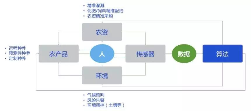 精准农业的核心要素:人+算法→农产品+农资+环境。
