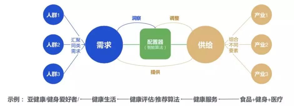 在智能化的供需配置器支持下,能够快速洞察不同用户群同类需求的特点及趋势,从而指导企业调整内部生产运营提供匹配的供给,甚至借助互联能跨产业获取生产要素来更好地满足需求。