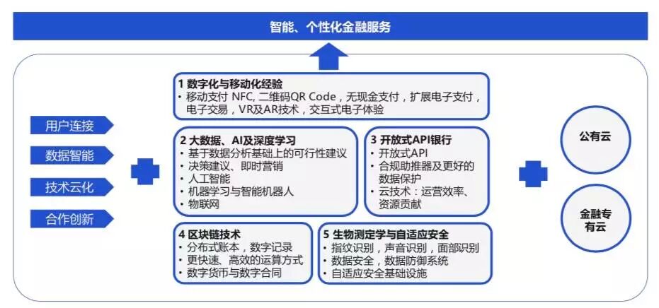 2.智慧金融:互联网连接+五大类技术+云架构为金融「注智」
