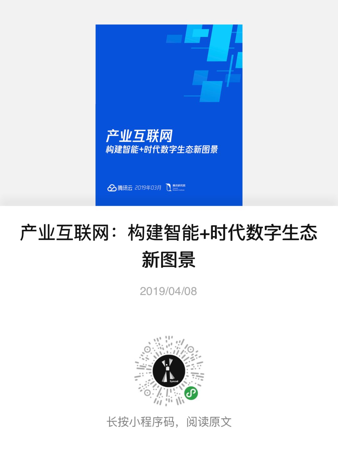 上月,腾讯云和腾讯研究院联合出品了一份报告《产业互联网:构建智能+时代数字生态新图景》,对上述问题做了详细解答。(文末附全文报告)