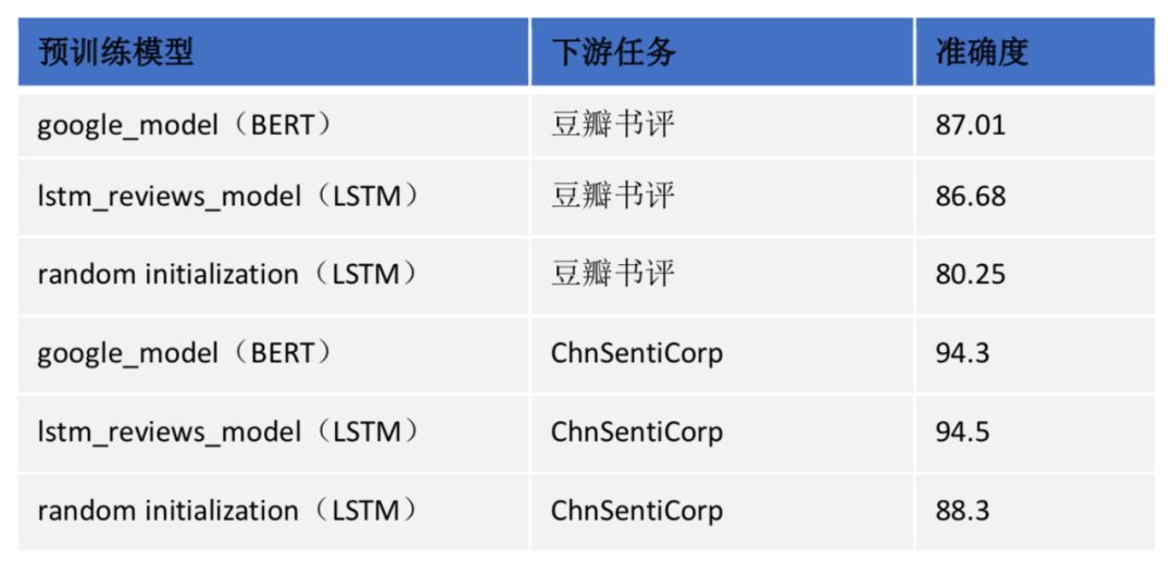 表1. 加载不同预训练模型在书评情感分类任务上的对比