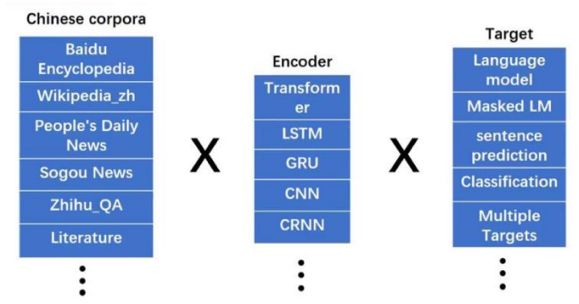 图3. 不同语料、编码器、目标任务进行组合,得到不同性质的预训练模型