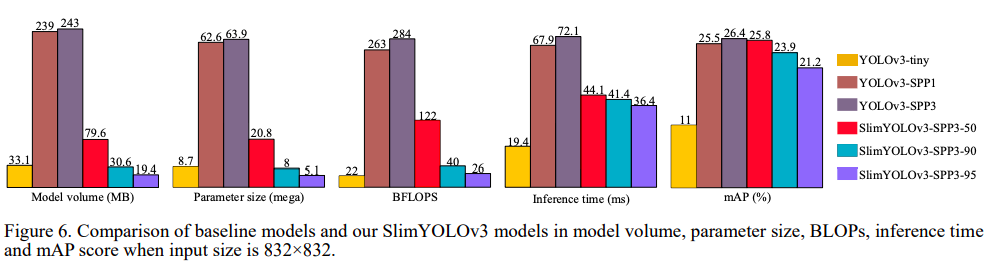 下图为作者发明的三种设置下的SlimYOLOv3 相比较基线版本的YOLOv3的结果: