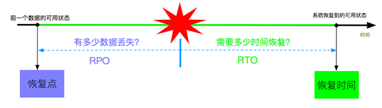 RTO(Recovery Time Objective):恢复时间目标,指出现灾难的时候多长时间可以让业务继续运作,即恢复时间。