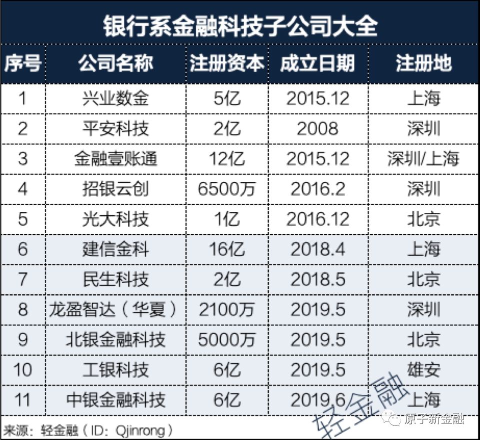 今年银行金融科技布局又一个比较大的动作,还有金融科技子公司在加速落地。上半年内就有工行、中行、华夏银行以及北京银行4家银行成立金融科技子公司,这比以往年份成立的都要多。