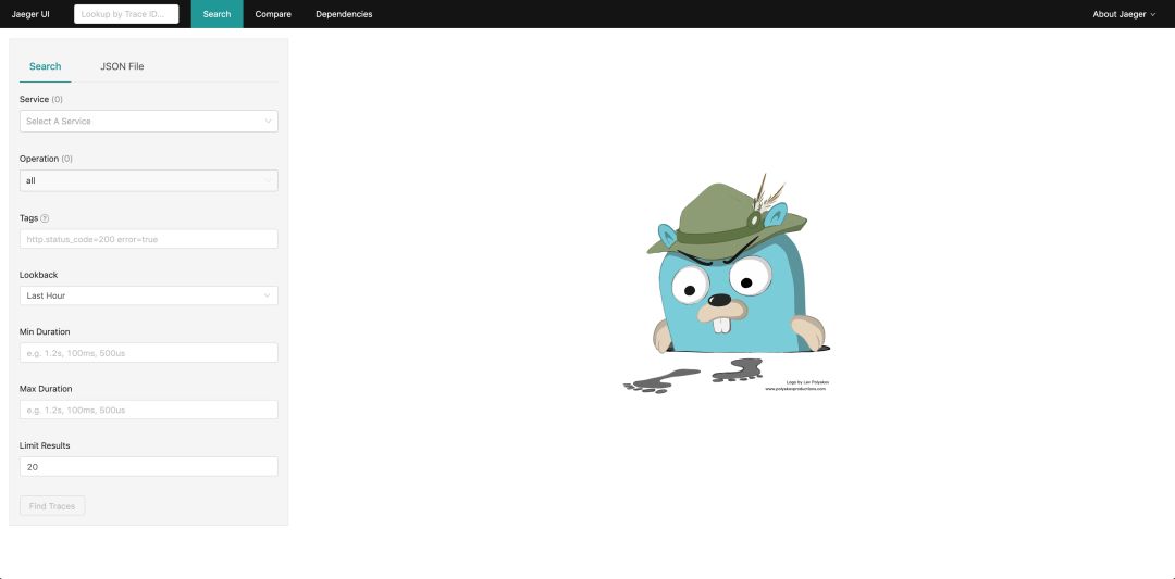 Jaeger Query UI服务中的 dependencies 选项默认点开为空,需要运行 spark-dependencies 来生成依赖关系图。