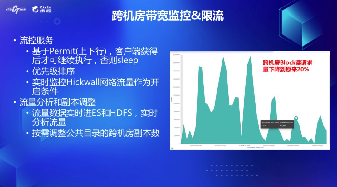 实践中有些BU的表,会被当做公共表来使用,我们需要识别出来,设置跨机房多副本策略。目前的hdfs audit log中,没有dfsclient访问datanode,datanode和datanode传输数据的实际流量audit信息,而我们需要这部分信息来看实际的路径和block访问情况,做进一步数据分析,另外当流量打爆的况下,需要有一个限流服务按照作业优先级提供一定的SLA保障,优先让高优先级作业获取到带宽资源。