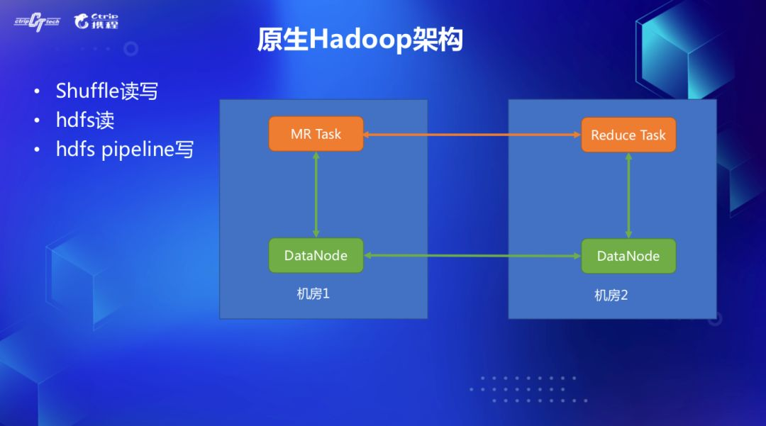 看下原生Hadoop的问题。网络IO开销主要来自两方面,Shuffle读写和HDFS读写。