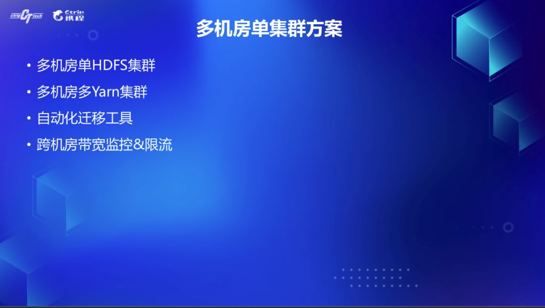 本文将分享携程Hadoop跨机房架构实践,包含Hadoop在携程的发展情况,整个跨机房项目的背景,我们跨机房的架构选型思路和落地实践,相关的改造和对未来的展望,希望给大家一些启迪。